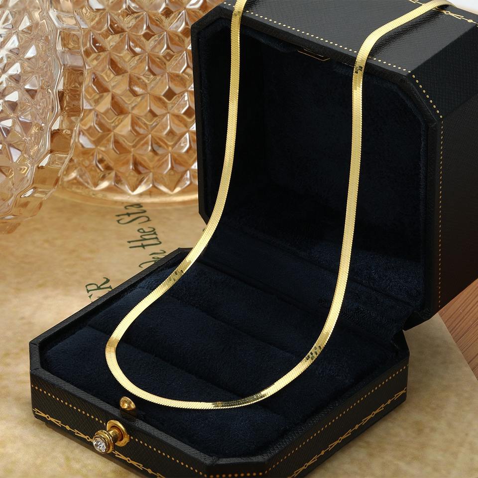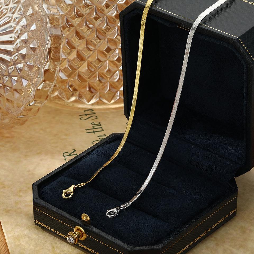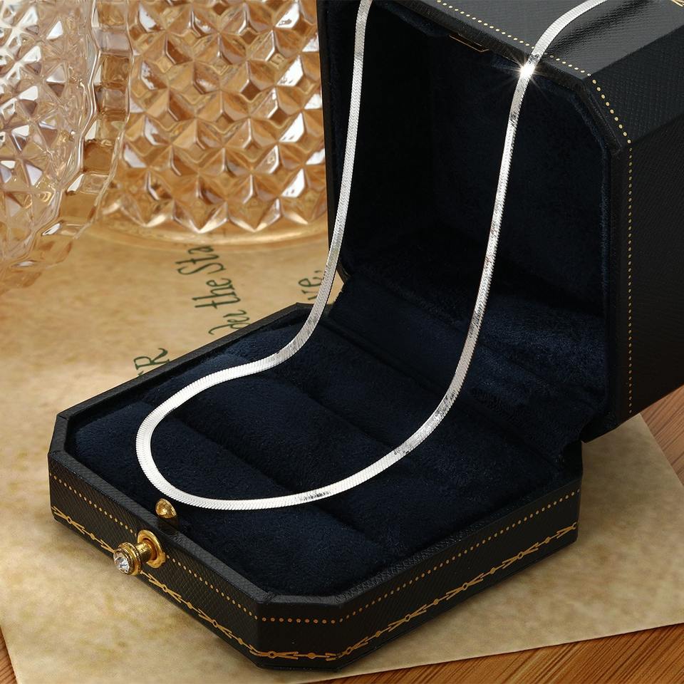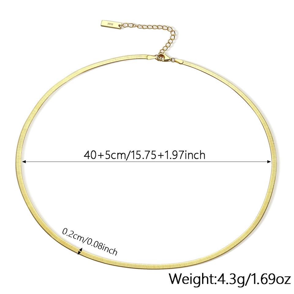 Popular 925 Sterling Silver Flat Snake Chain Necklace Women Gold Plated Link Chain Chokers Wedding Engagement Gift Jewelry