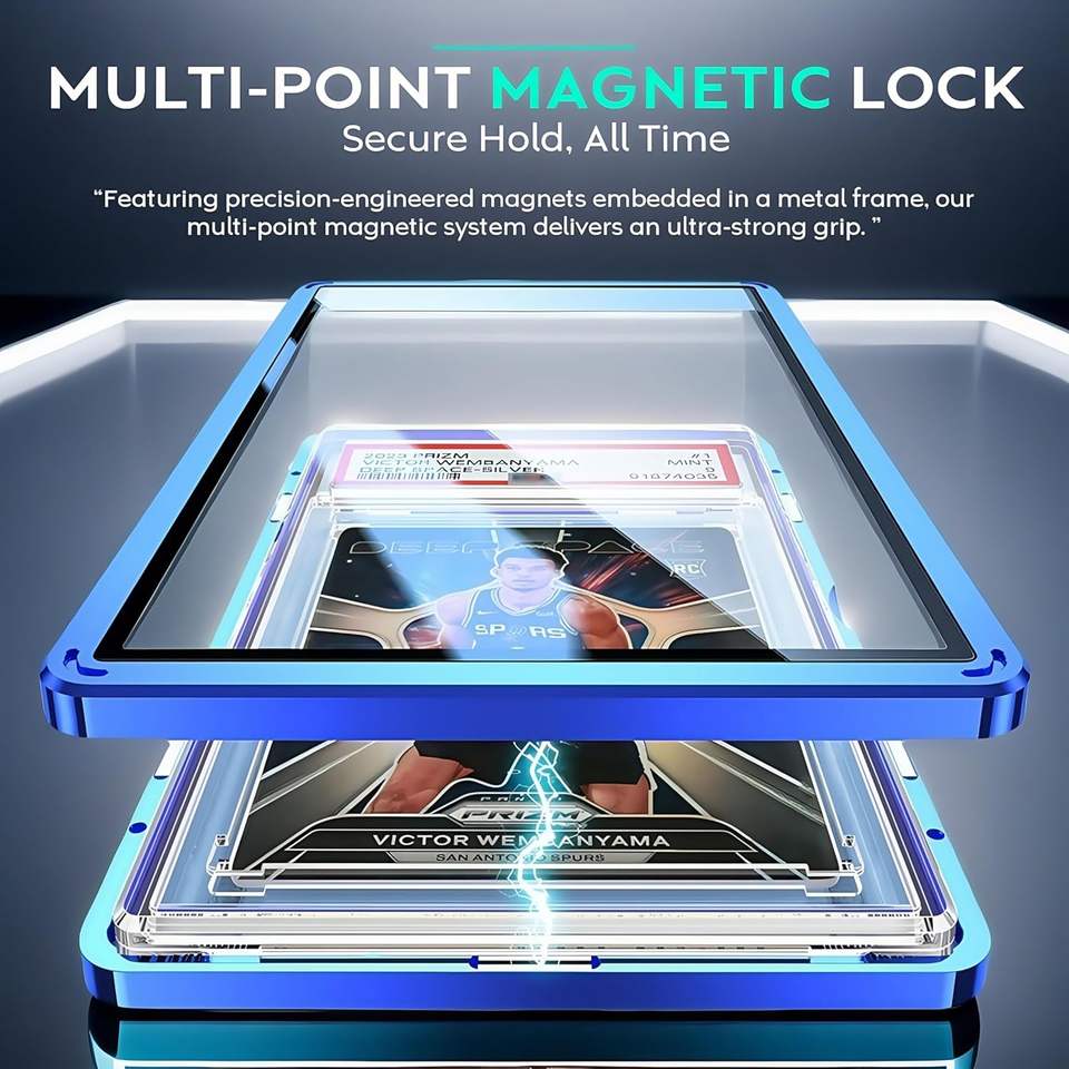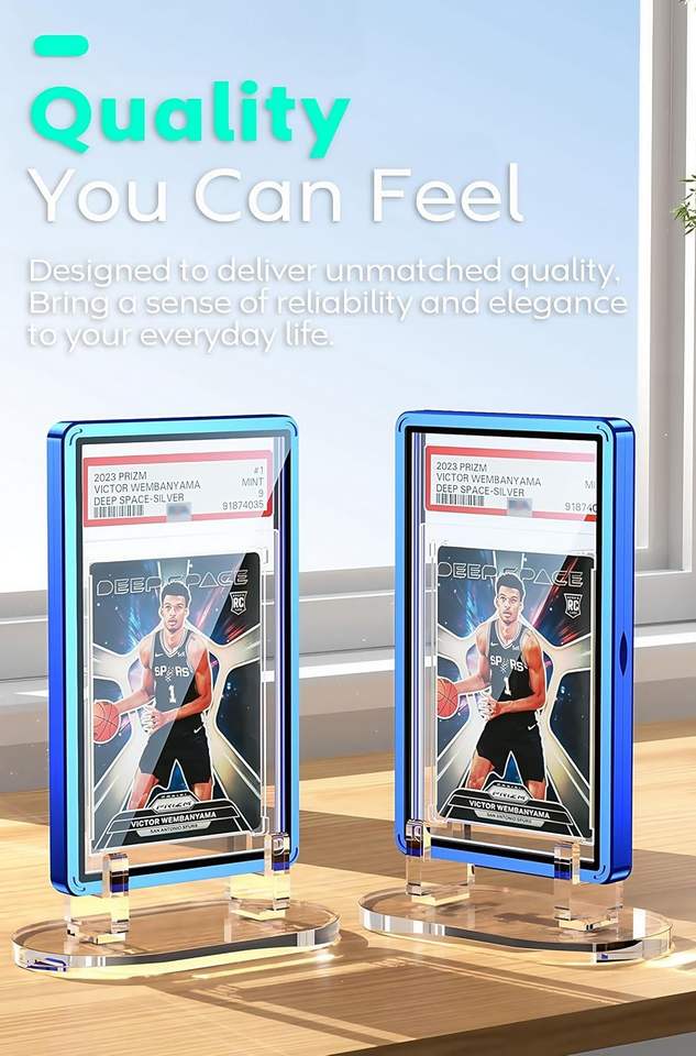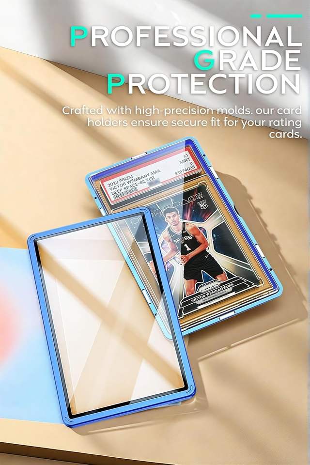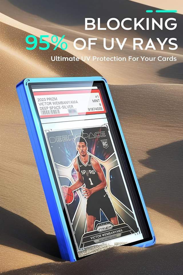 Étui populaire en aluminium pour cartes, avec couvercle en verre trempé et protection UV, pour présentoir de cartes sportives
