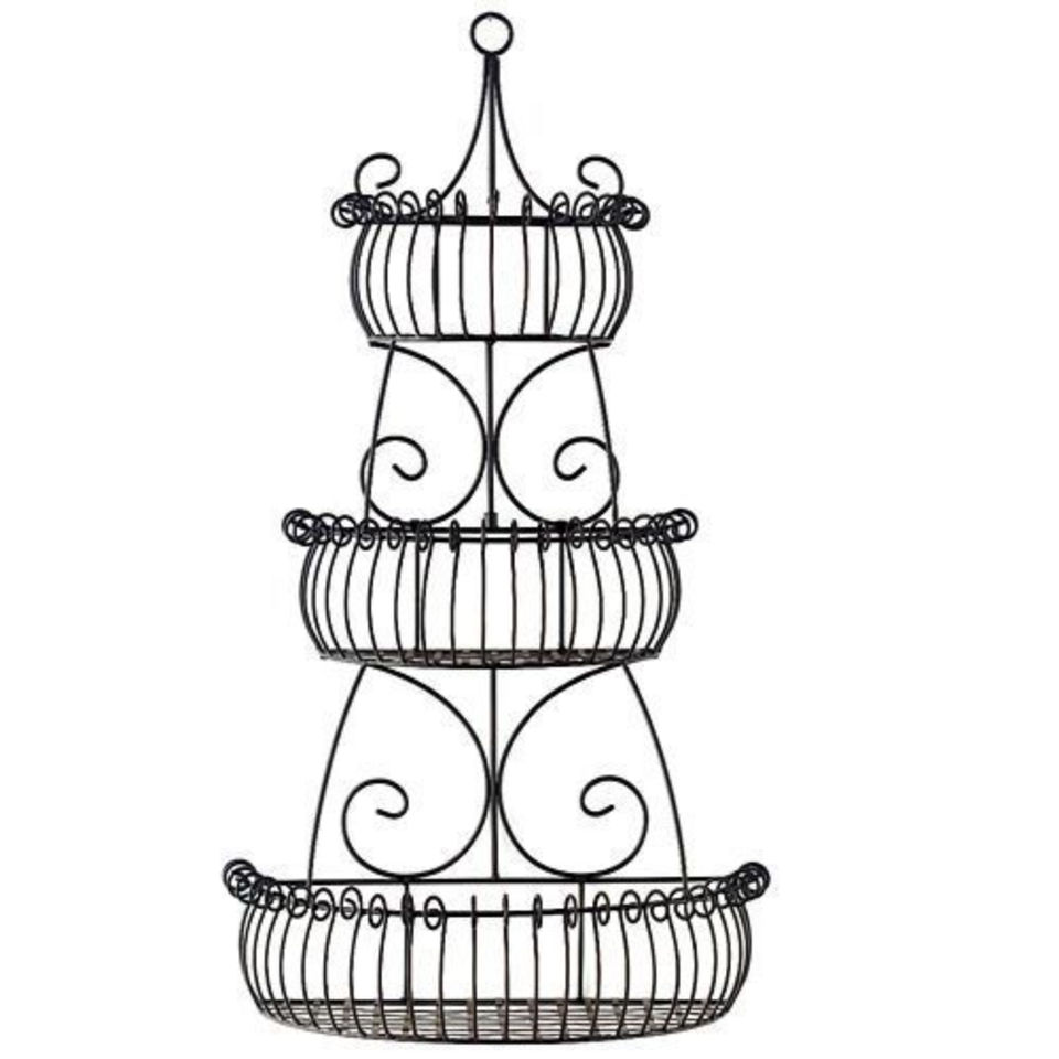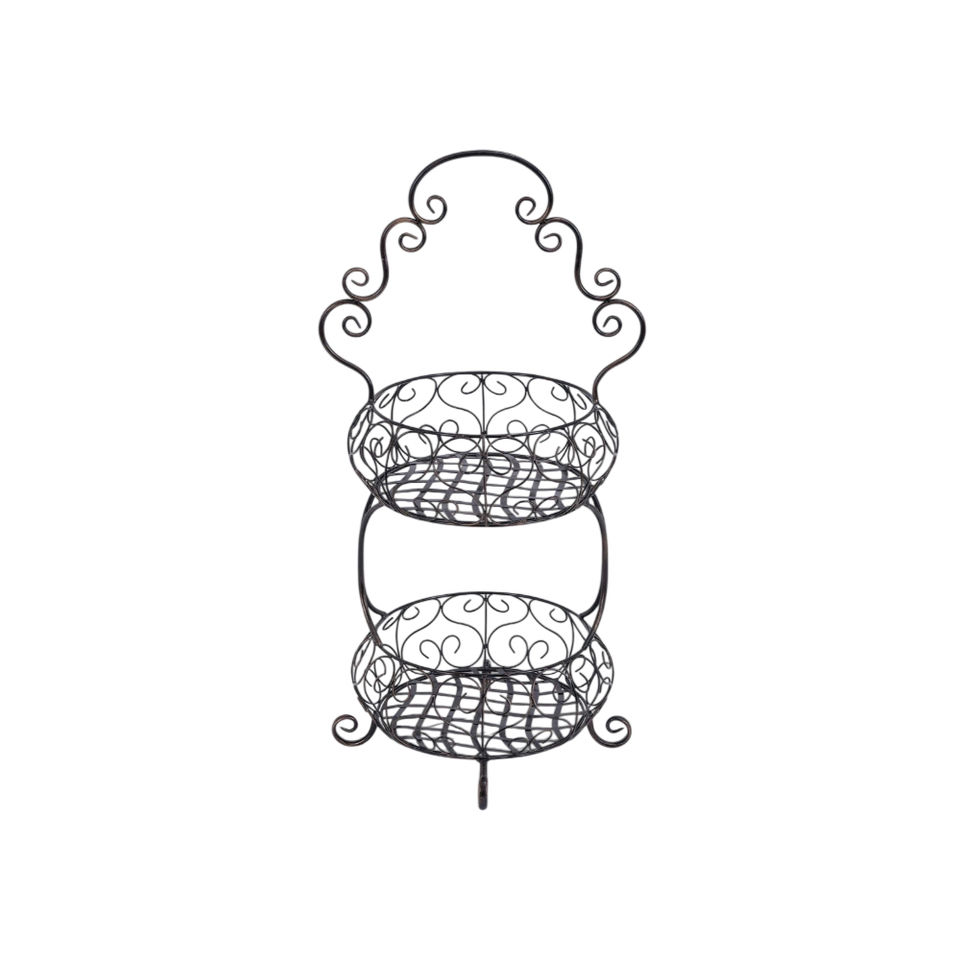 Panier à fruits rond à 2 niveaux en fil de fer noir populaire avec support et poignée pour la table de cuisine, utilisation pour le stockage des fruits