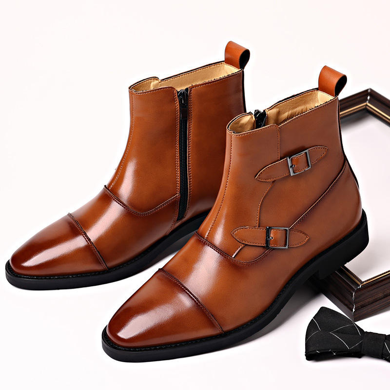 Bottes Chelsea populaires pour hommes en PU marron imperméables et légères, personnalisées pour hommes