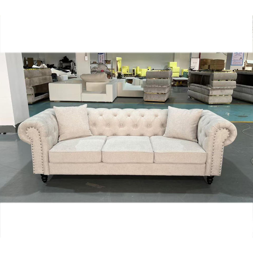 Ensemble de canapés capitonnés de style campagnard classique populaire, meubles de salon, canapés de détente pour appartement et villa avec structure en bois massif
