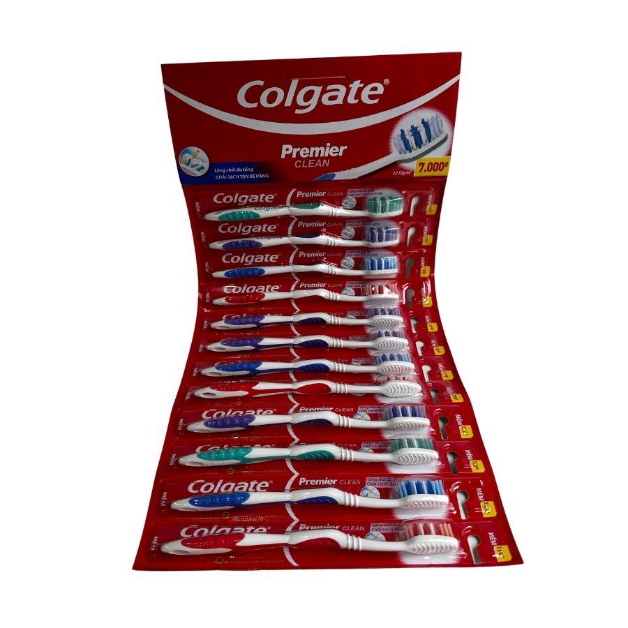Brosse à dents populaire Colgate Premier Clean 288 pièces brosse à dents à poils souples incurvés, emballage de brosse à dents de haute qualité pour adulte