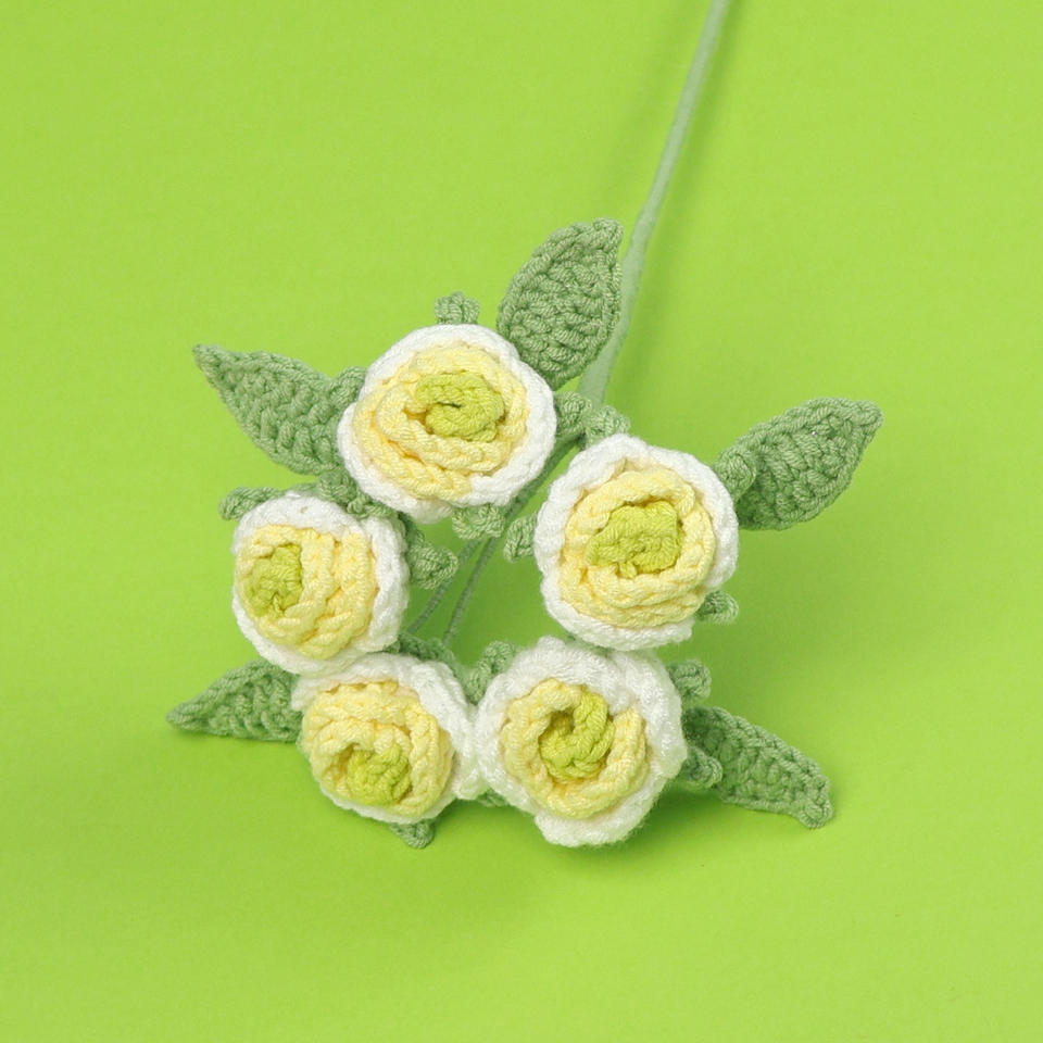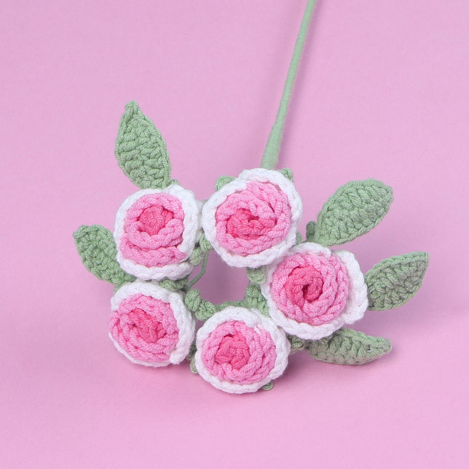 Populaire créatif multicolore 5 têtes Crochet laine tricoté bulle Rose Bouquet pour l'obtention du diplôme Halloween gros tricot fleur