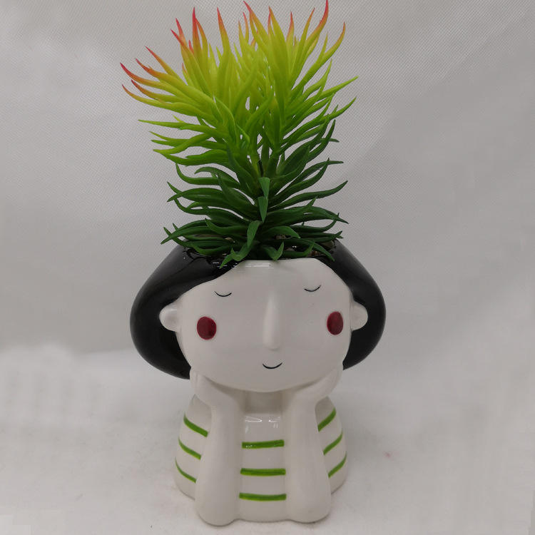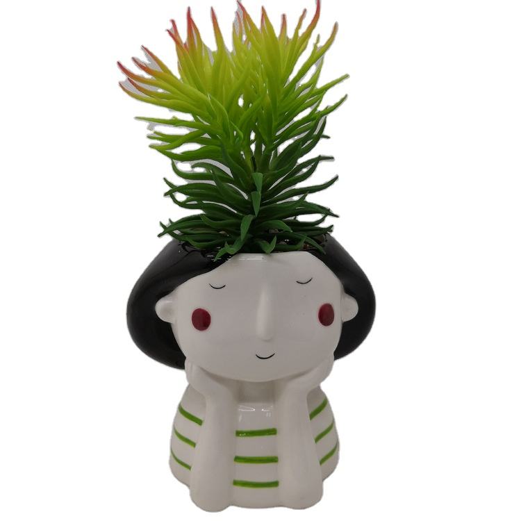 Popular Custom 3D Ceramic Girl Decorative Flower Pot Cheap Succulent Planter Artificial Flower Pot Beautiful Planters
