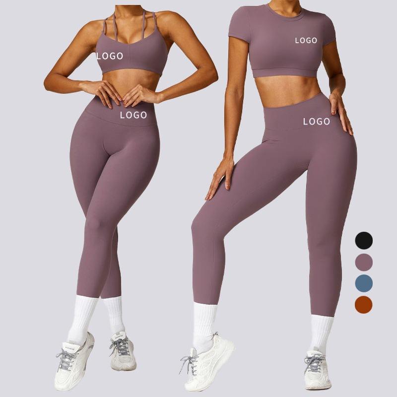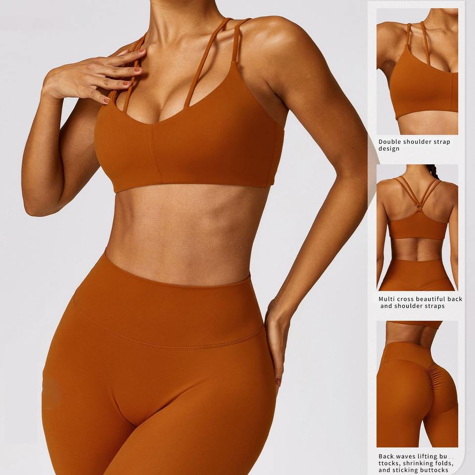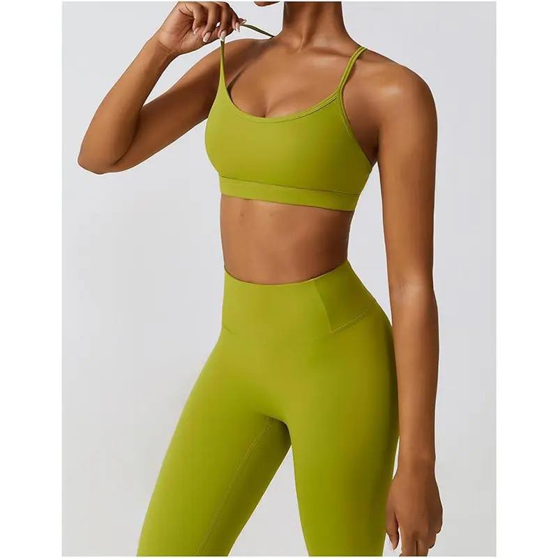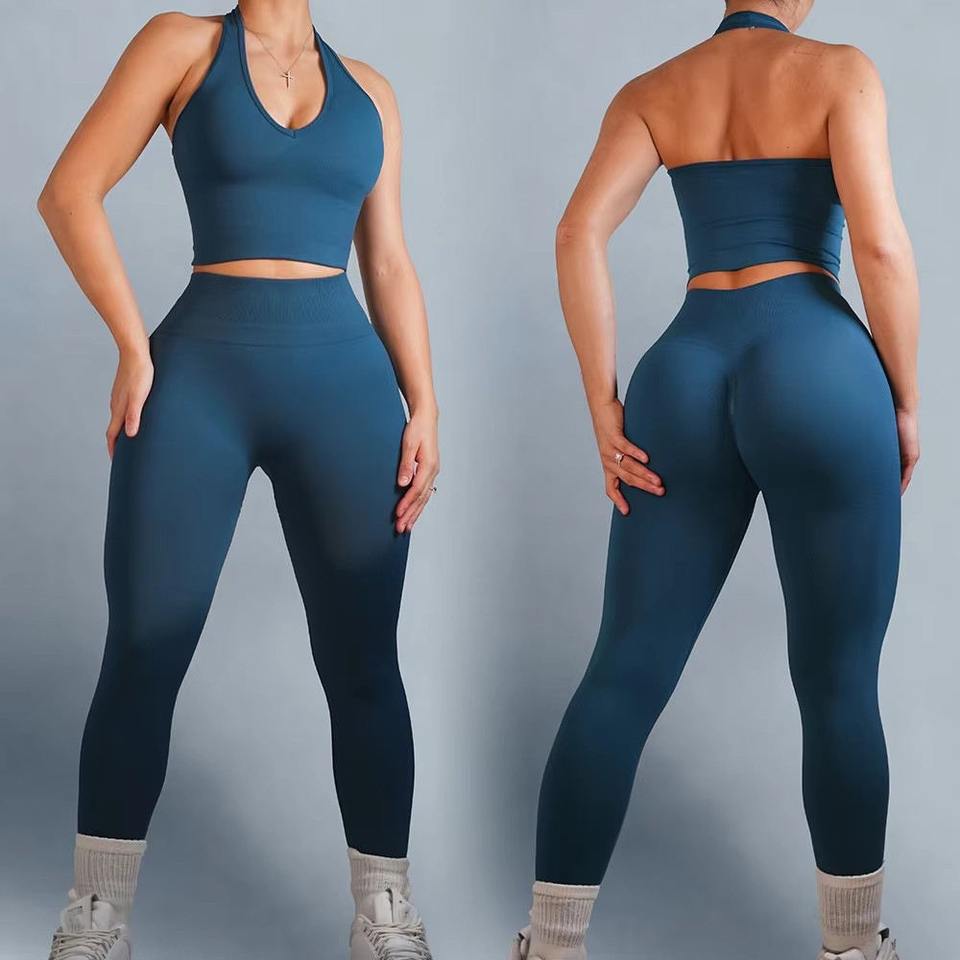 Ensemble de yoga populaire personnalisé avec logo, sans couture, pour femme - Tenue de sport 2 pièces : soutien-gorge de sport et legging légers à taille élastique