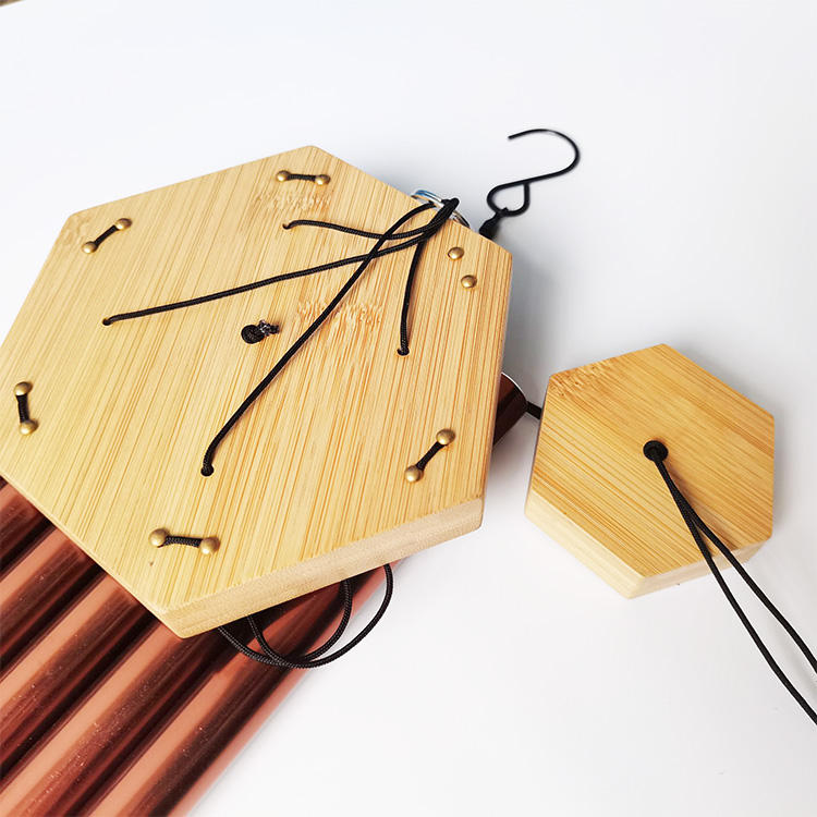 Conception populaire carillons éoliens hexagonaux en bambou Tubes en cuivre décor extérieur et intérieur son apaisant pour patio et jardin