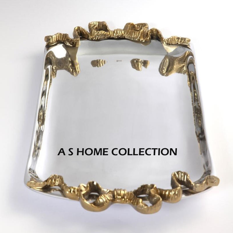 Conception populaire chocolat plateau de service événement décoratif en aluminium plateau de service feuille forme poignée haute exigence