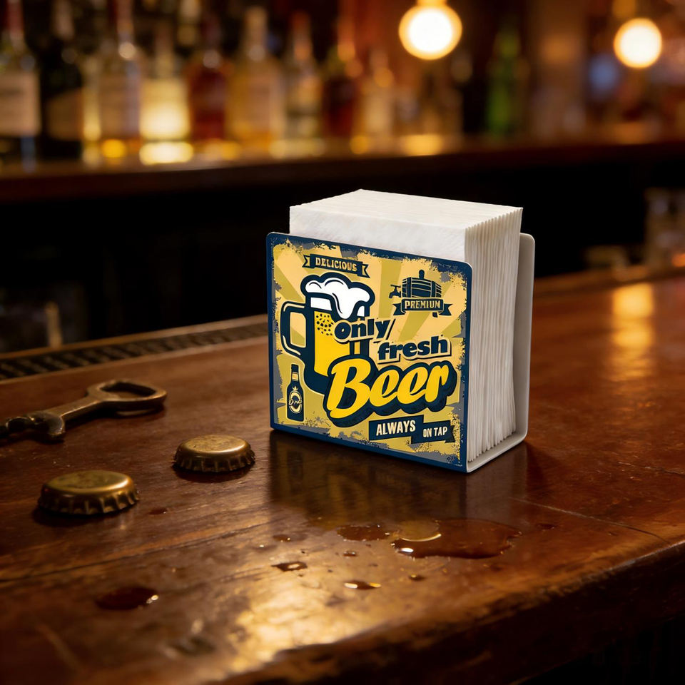 Porte-serviettes en métal durable au design populaire, pour bar, cuisine, café, table, motif personnalisé, carré, porte-serviettes en papier pour cocktails