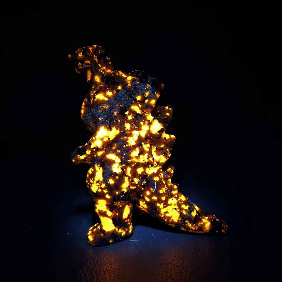 Sculpture de Godzilla en cristal Yooperlite naturelle de haute qualité, design populaire, personnages sculptés, réaction UV, pour cadeau