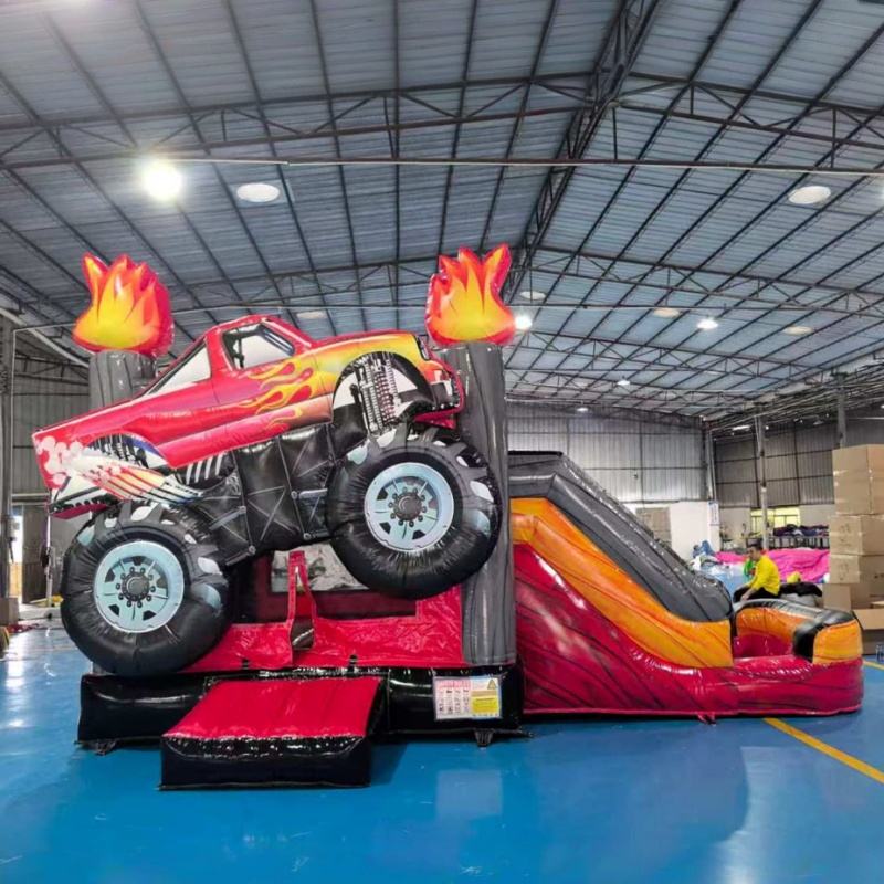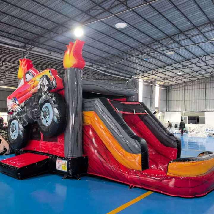Château gonflable de conception populaire, toboggan gonflable commercial, location en intérieur, camion de pompiers, château gonflable