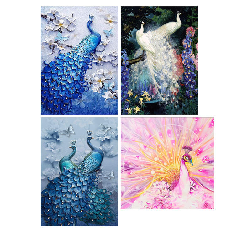 Peinture diamant avec numéros, kit de broderie complet, motifs d'animaux, paon, 56 pièces, populaires à faire soi-même