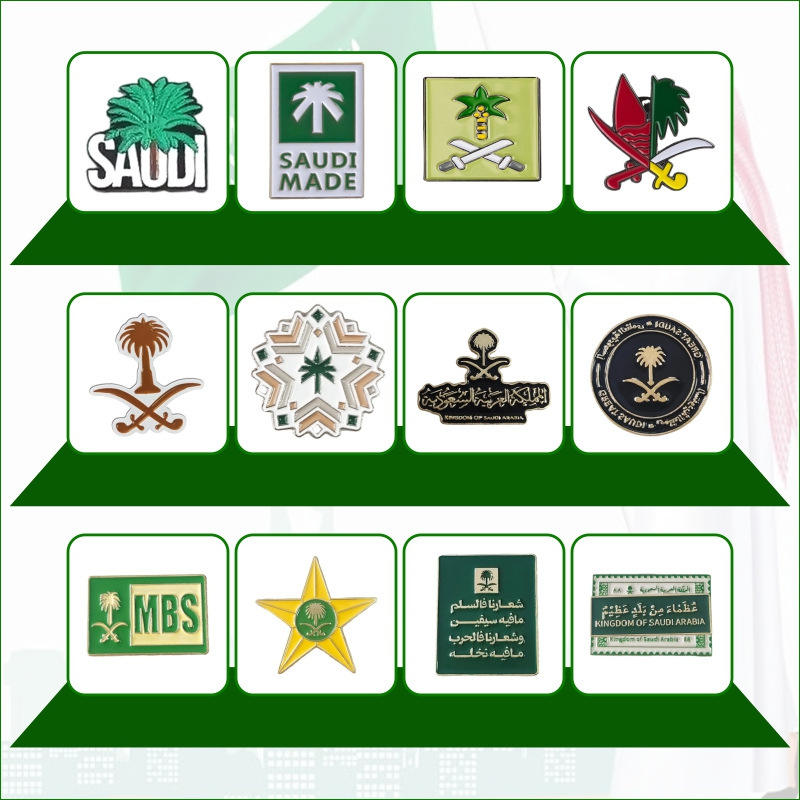 Épinglette métallique émaillée gravée, écologique et populaire, avec logo couleur personnalisé, pour la promotion des marchés modernes du Moyen-Orient