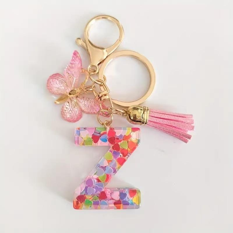 Nom du produit:Porte-clés pompon lettre papillon violet et rose