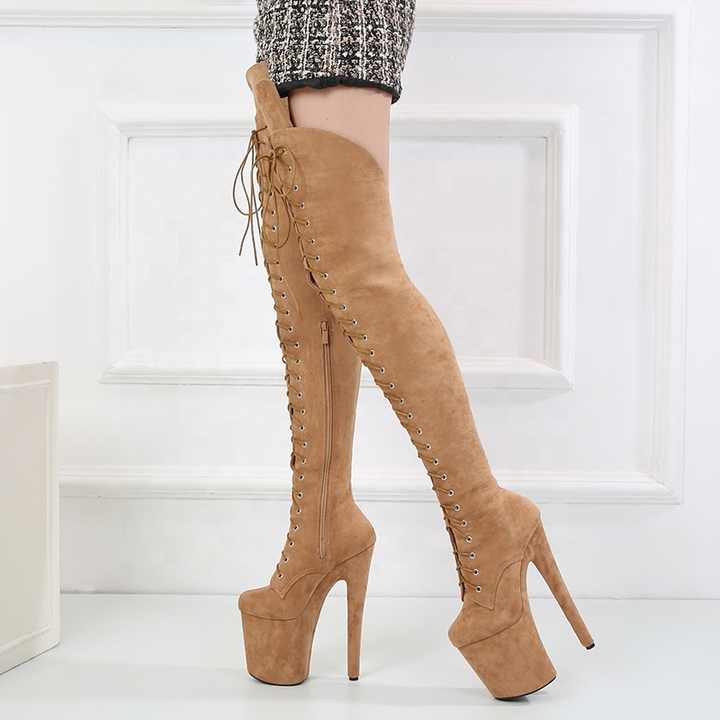 Bottines à talons hauts exotiques en faux daim populaires, bout fermé, plateforme de strip-teaseuse, danseuse, 20 cm 8 pouces, talons hauts sexy pour femmes, bottes au-dessus du genou