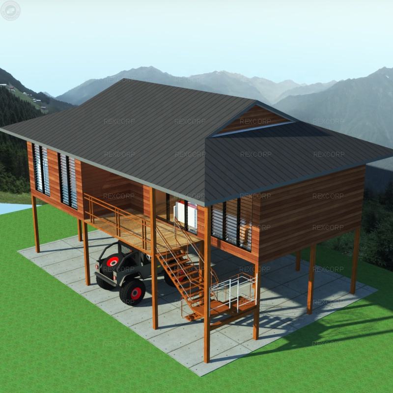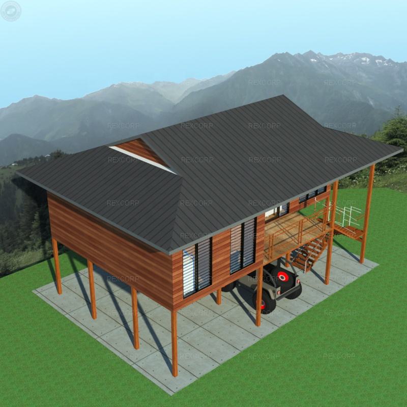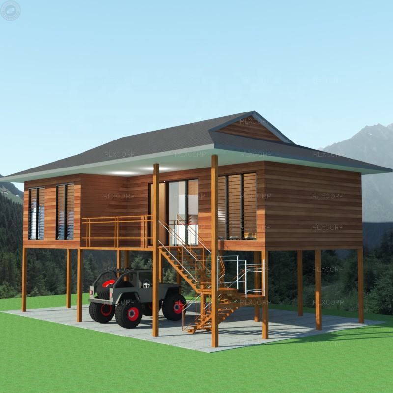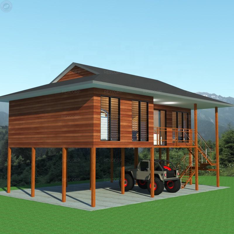 Villa préfabriquée populaire en acier galvanisé, maison sur pilotis avec parking en Papouasie-Nouvelle-Guinée