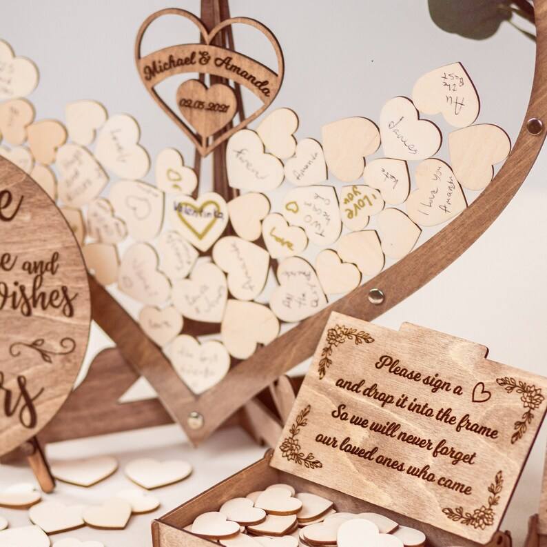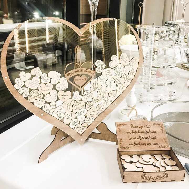 Livre d'Or de Mariage Original en Forme de Cœur en Acrylique avec Support – Cadeau Tendance