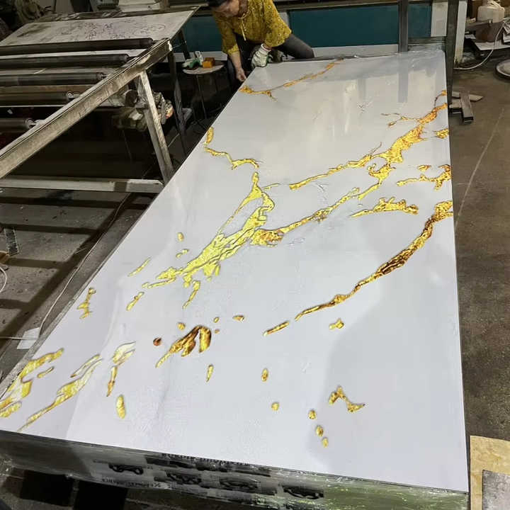 Panneau en PVC marbré doré populaire, panneau en marbre UV, feuille de marbre doré en PVC OEM