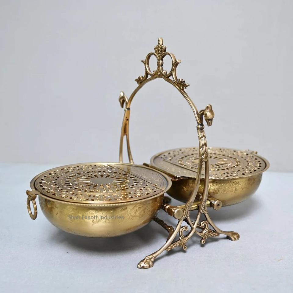 Populaire Or Biscuit Boîte Double Shell En Laiton Pliant Plateau De Service Victorien Charme Biscuit Caddy Biscuit Baril Boîte