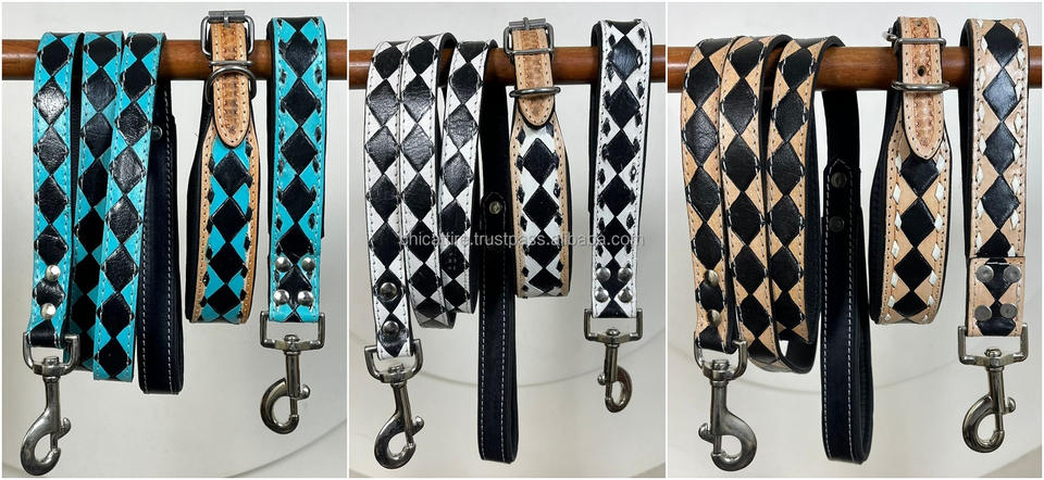 Ensemble de laisse de chien en cuir damier tassé à la main