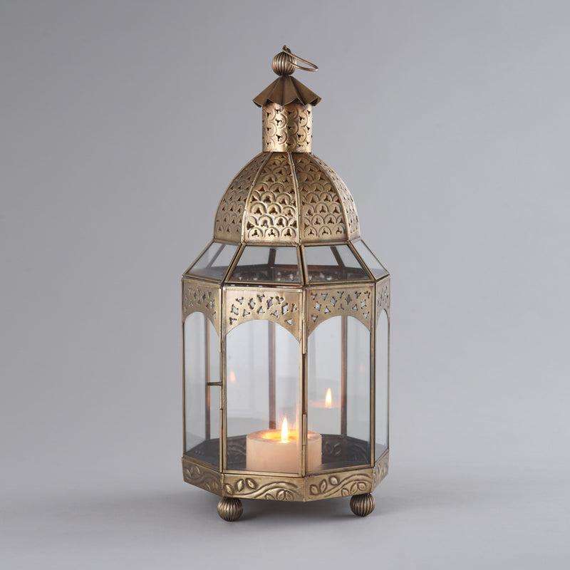 Lanternes suspendues en métal de style marocain, faites à la main, durables, finition dorée, porte-bougies finition or antique, décoration d'intérieur