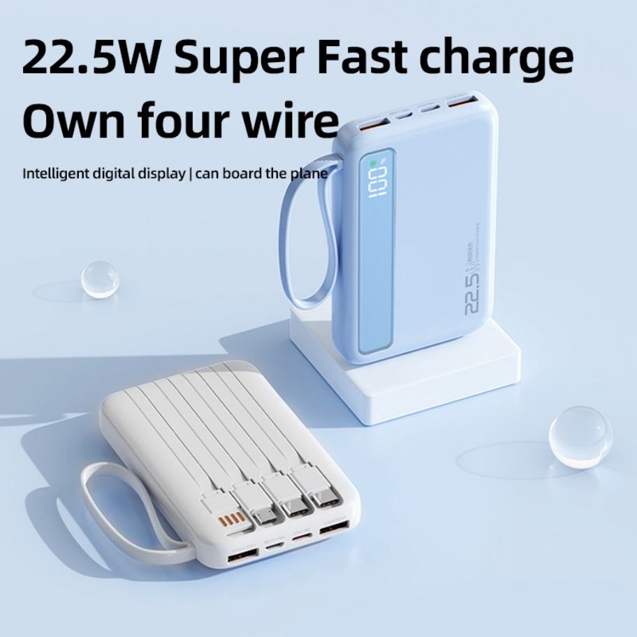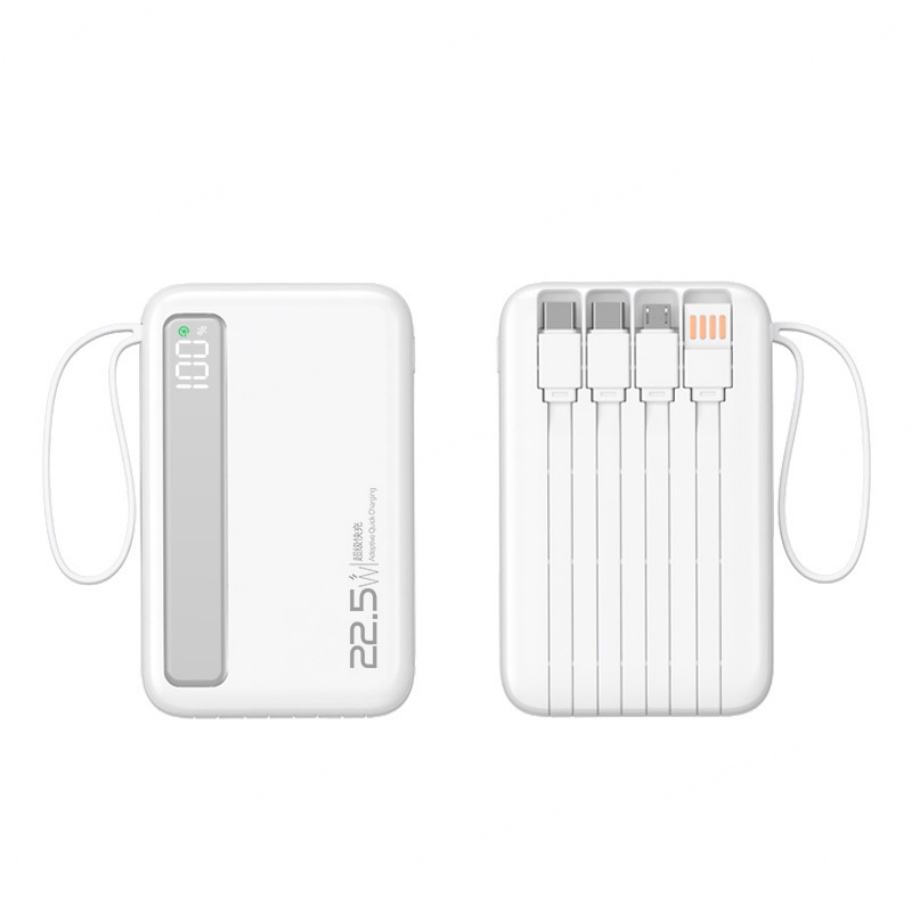 Batteries externes populaires haute capacité 10000mAh 20000mAh avec câbles intégrés, charge rapide PD22.5W, pour téléphone, idéales pour l'extérieur