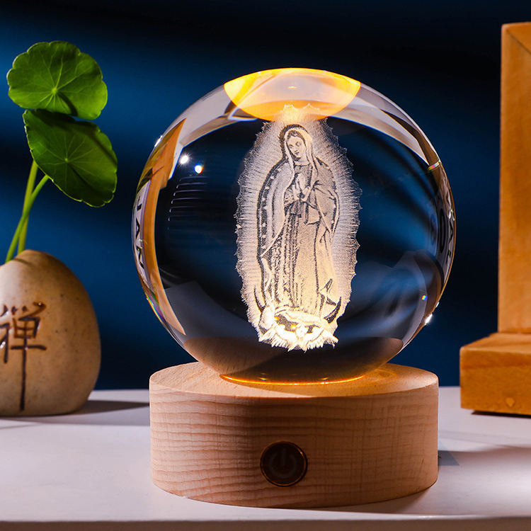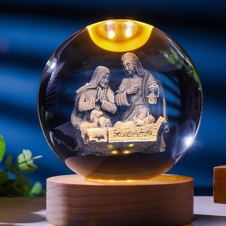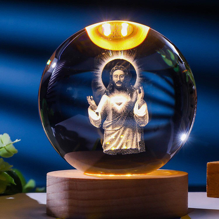 Populaire saint dieu père mère christ croix jésus famille cadeau mini 3d art boule de cristal lampe de nuit boule de cristal lumineuse