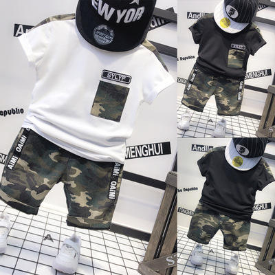 Vêtements pour enfants, ensembles de vêtements tendance, nouvelle collection, t-shirts en coton pour garçons et pantalons camouflage pour hommes, vente chaude