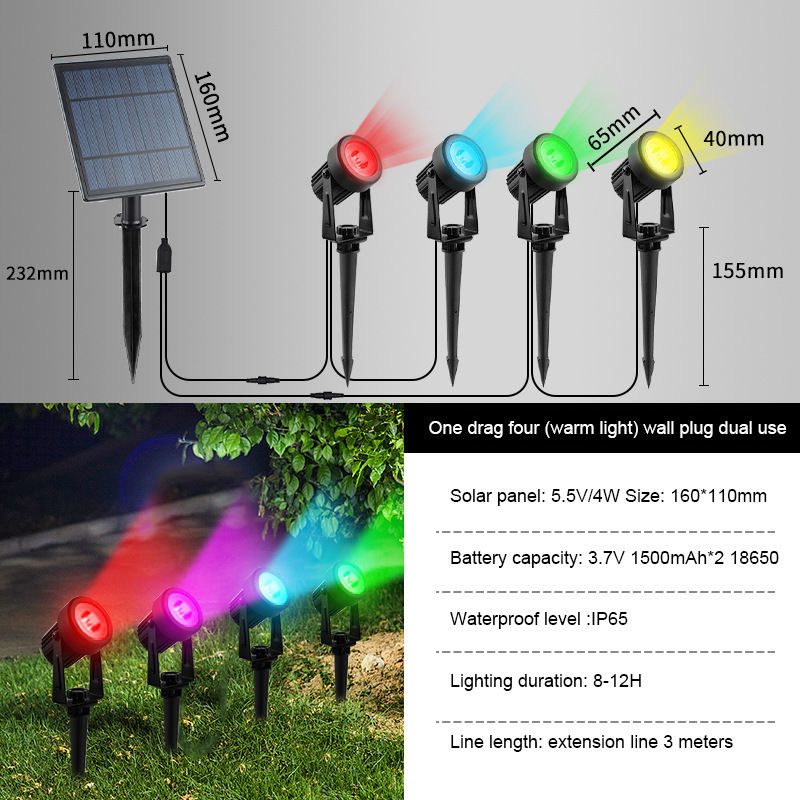 Lampes solaires de jardin d'extérieur à led, étanche IP65, rvb cob 4W