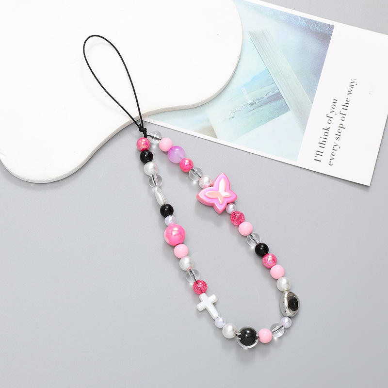 Populaire Internet célèbre papillon série bricolage perle perlée coeur chaîne de téléphone court Anti perte téléphone suspendu corde
