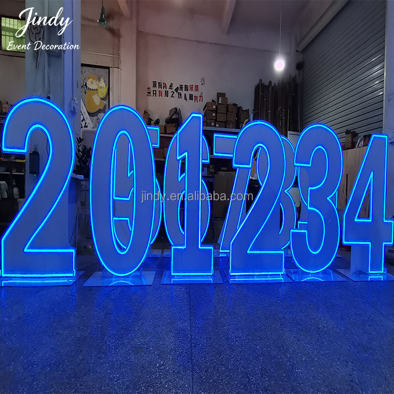 Lettres et chiffres lumineux en néon blanc en acrylique LED populaires pour la décoration de mariage et de fête d'anniversaire