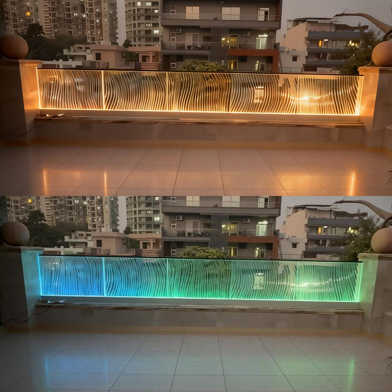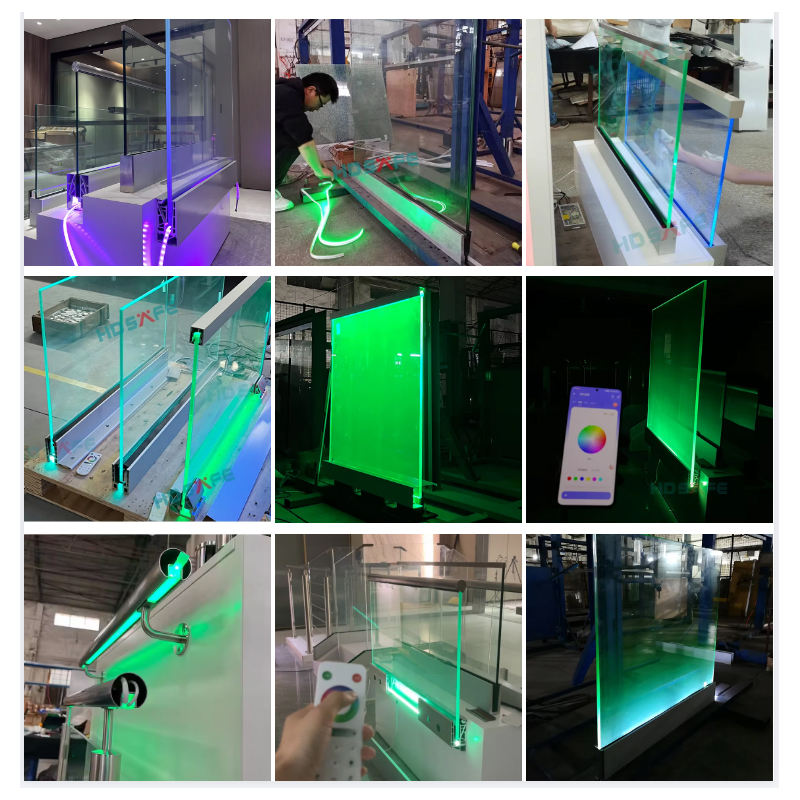Balustrade en verre à LED populaire pour balcon extérieur, terrasse, toit, cadre sans cadre de 12 à 20 mm, balustrade en verre à canal en U en aluminium