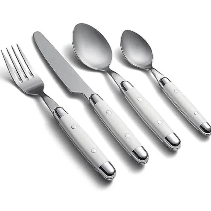 Ensemble de couverts en métal plaqué argent populaire avec poignée en résine multicolore pour la maison et la vaisselle de mariage