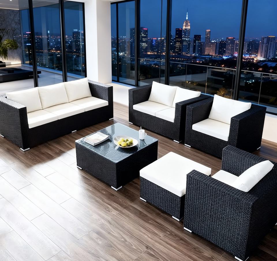 Canapé d'extérieur en rotin noir populaire en ligne, résistant au soleil et à l'eau, mobilier de loisirs pour balcon de jardin, combinaison multi-places