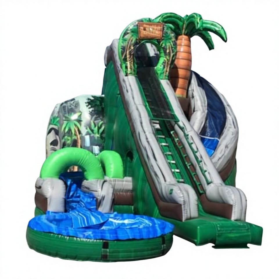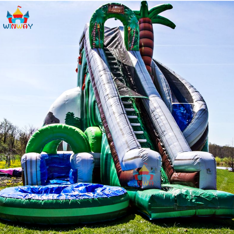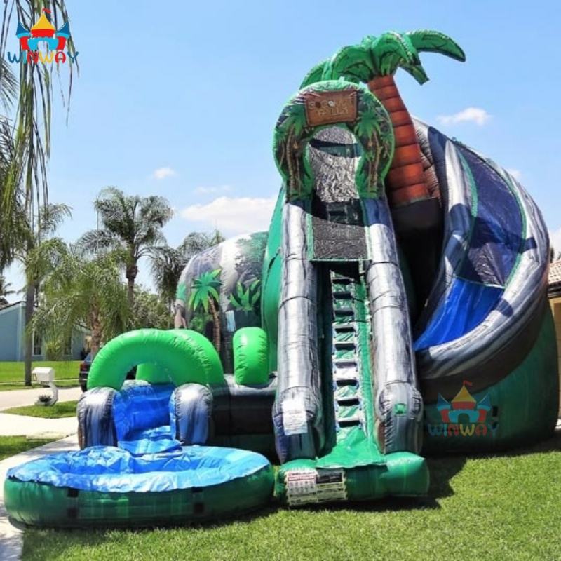 Toboggan aquatique gonflable populaire en PVC avec design palmier, château aquatique d'extérieur, château gonflable pour adultes, combo toboggan incurvé, utilisation scolaire