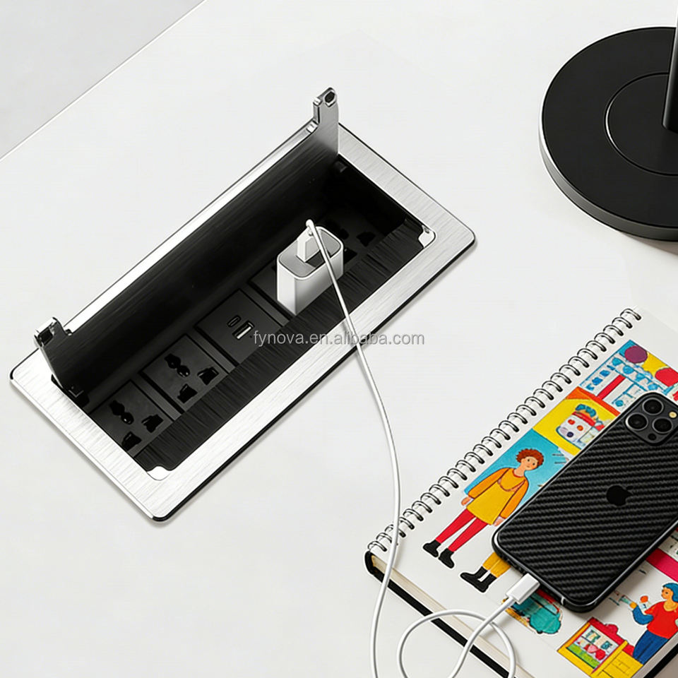 Prise de courant de bureau pop-up populaire prise de table rabattable pour table de conférence prise de courant de bureau coulissante avec télécommande USB RJ45