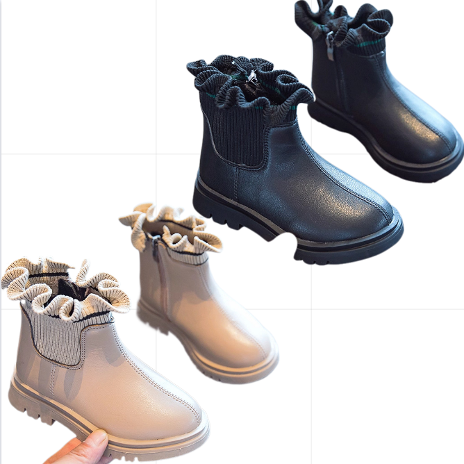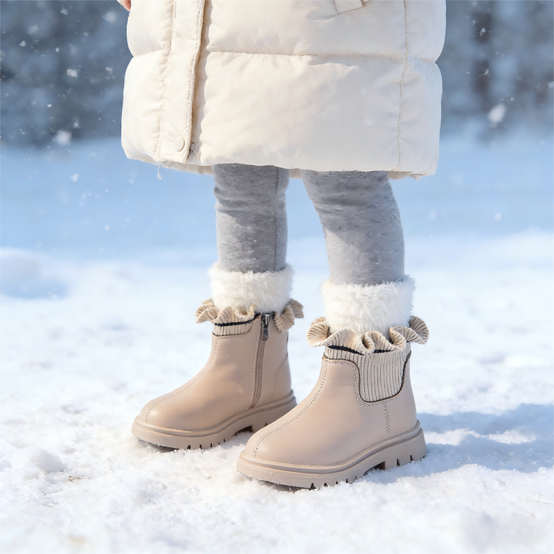 Bottines en tricot PU pour petites filles, populaires, avec fermeture éclair, pour l'été, l'automne et l'hiver, chaussures chaudes pour tout-petits, en polaire