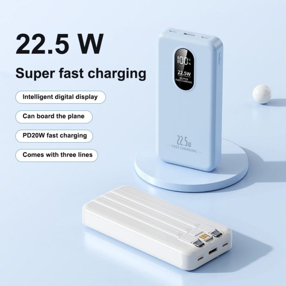 Produit populaire : Batterie externe mobile à charge rapide 22,5 W, mini 10000 mAh 20000 mAh, charge rapide, 3 câbles intégrés
