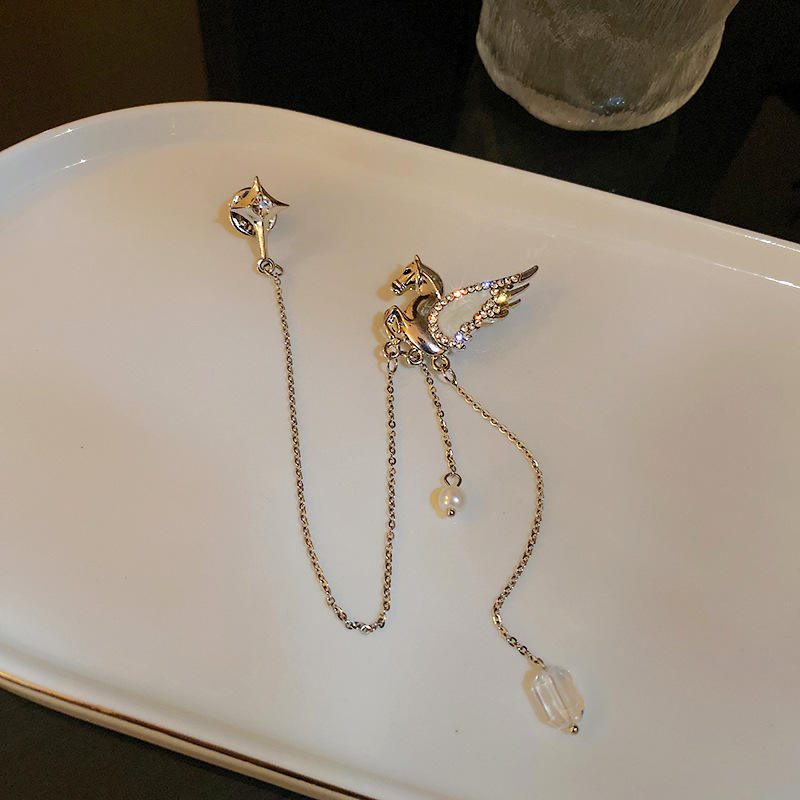 Vente populaire Broches cristal strass perle Pegasus quatre branches étoile gland lien chaîne broches broche femmes