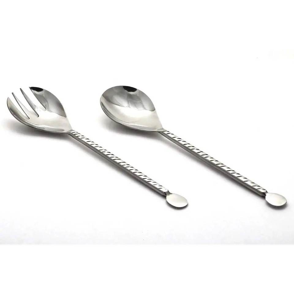 Cuillère et fourchette de service en acier inoxydable populaire avec poignée en spirale martelée ensemble de serveurs à salade en argent pour restaurant
