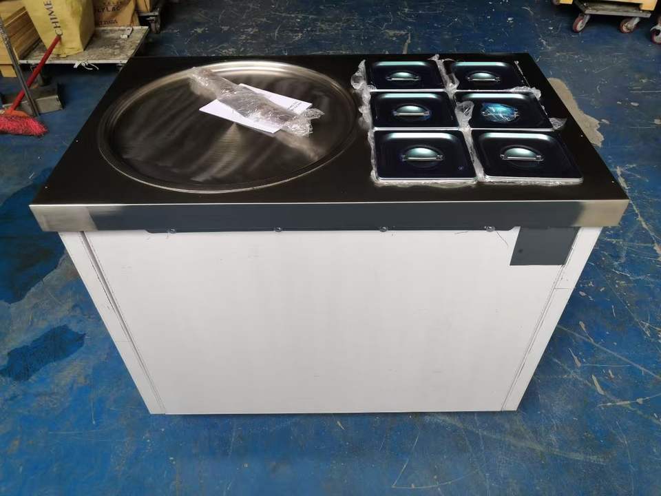 Machine à glace roulée populaire pour la restauration rapide, machine commerciale à glace frite, machine à glace roulée thaïlandaise à faible bruit