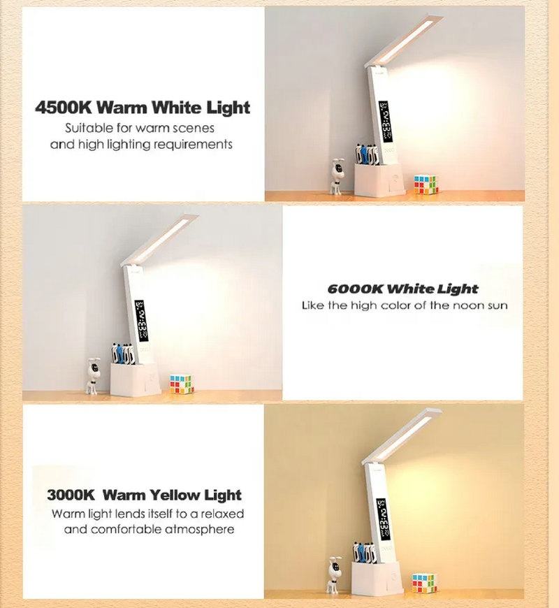 Lampe de bureau LED USB populaire pour l'étude et la lecture, lampe de table multifonction avec calendrier, date, tactile, veilleuse de chambre avec porte-stylo