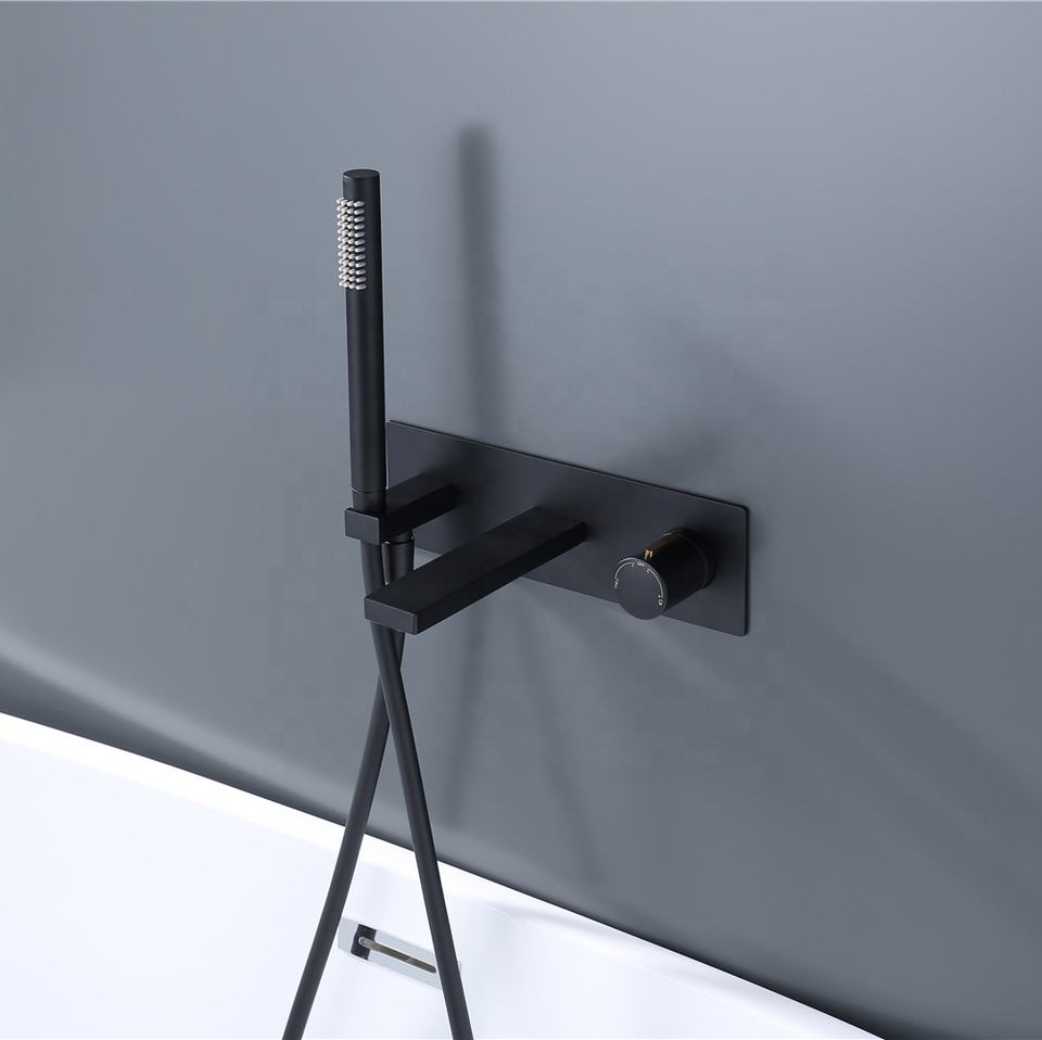 Design de style populaire dans l'ensemble de douche mural poignée en laiton dissimulée robinet de baignoire mural noir mat