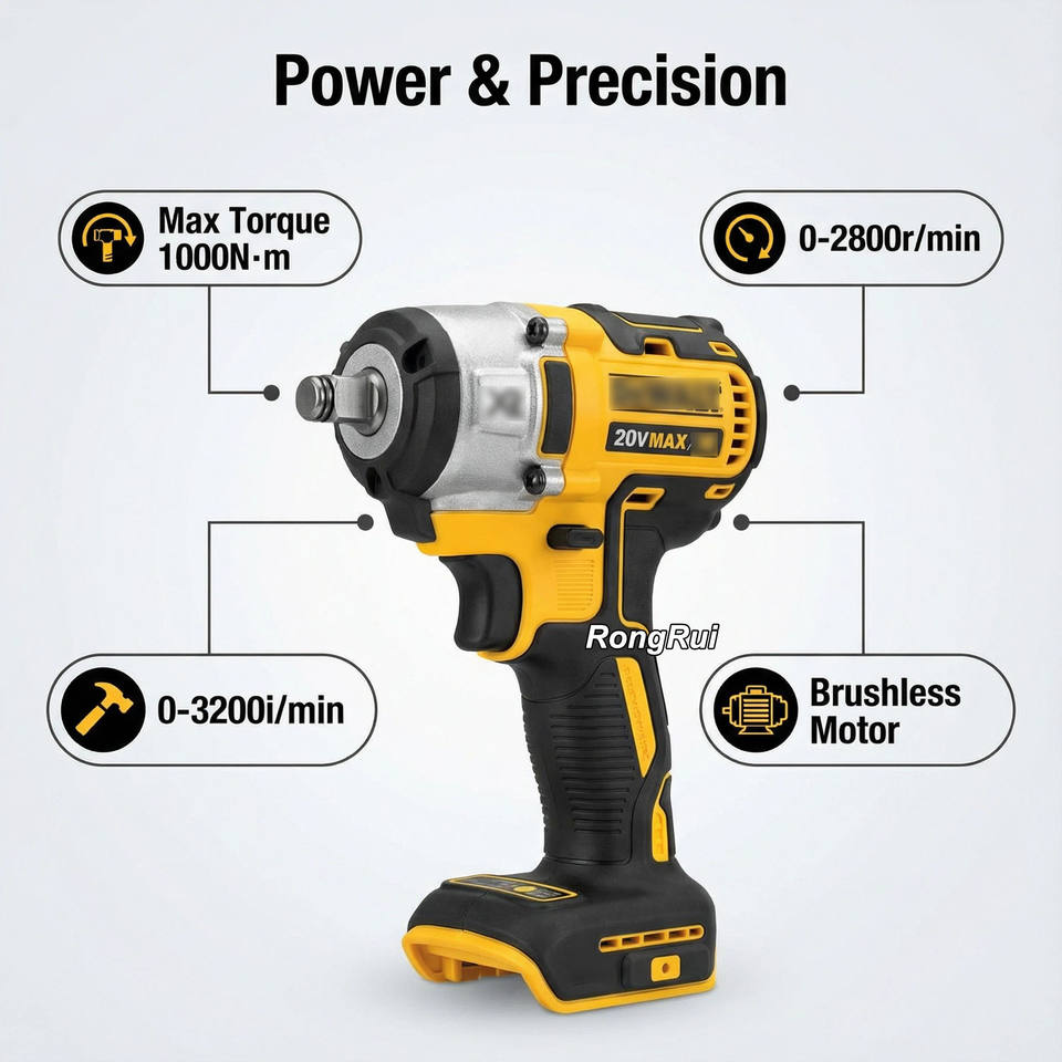 Clé dynamométrique populaire 1000 N.m 1/2 pouce, fonctionnement durable, réparation de pneus de voiture, outils électriques, travaux de construction lourds, clés à chocs
