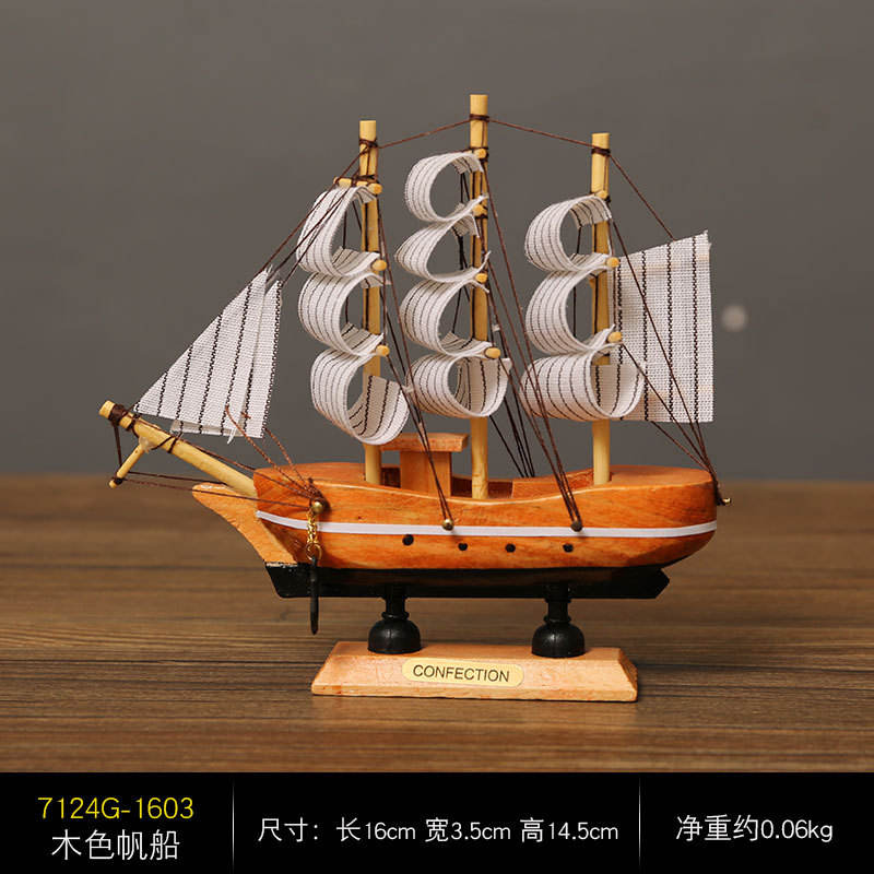 Popular Wooden Sailing Boat Mediterranean Sailing Ship Furnishing Art Home Decor Handmade Carved Nautical Boat Model Gift