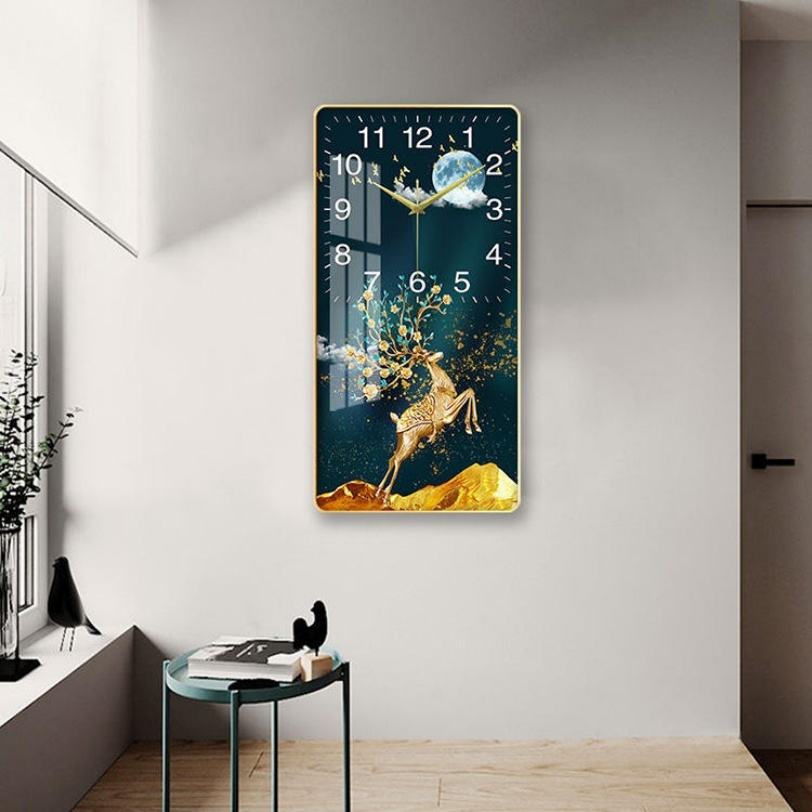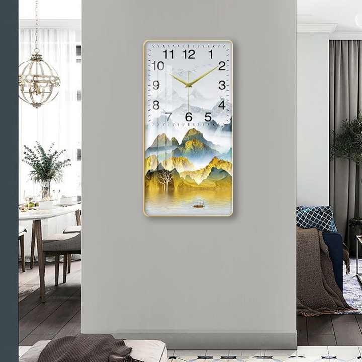 Horloge murale artistique en porcelaine haut de gamme, horloge décorative atmosphérique, horloge en porcelaine de cristal avec peinture de paysage de Jinshan