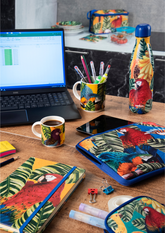 Ensemble de 4 tasses en porcelaine New Bone China de 30 cl (10 oz) avec couvercle, motif tropical Havana multicolore, passe au micro-ondes et au lave-vaisselle