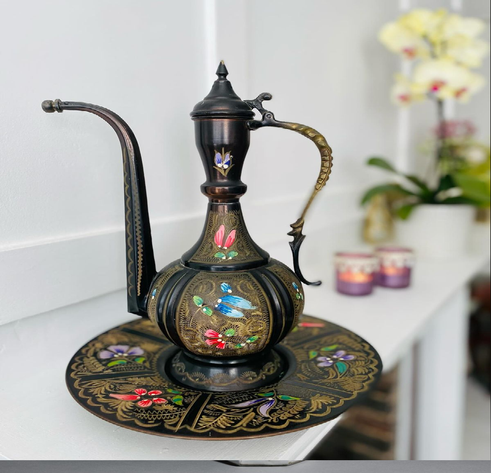 Aiguière en porcelaine et argent avec motif dragon bleu et blanc. Art traditionnel moyen-oriental. Disponible aux prix de gros.