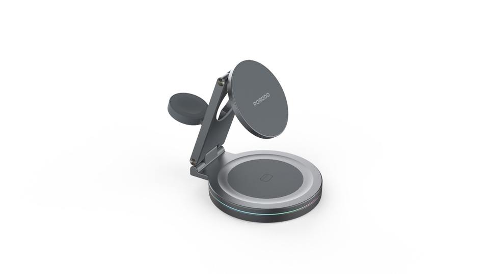 Chargeur sans fil à trois appareils à base rotative Porodo