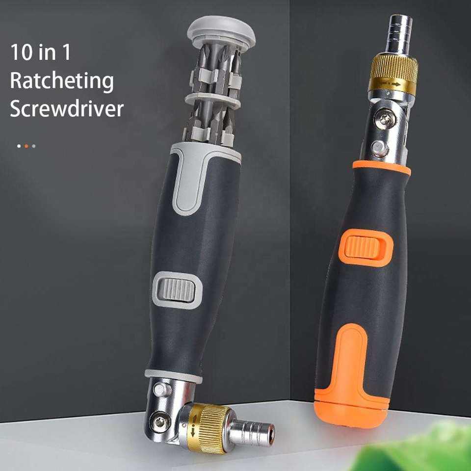 Kit de tournevis à cliquet portable 10-en-1 bidirectionnel réglable finition chromée avec embouts Phillips, multifonction pour le bricolage