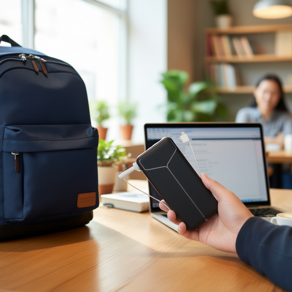 Batterie externe portable 10000mAh, prise US, 2 câbles intégrés, 4 sorties, 3 entrées, compatible avec les téléphones iOS